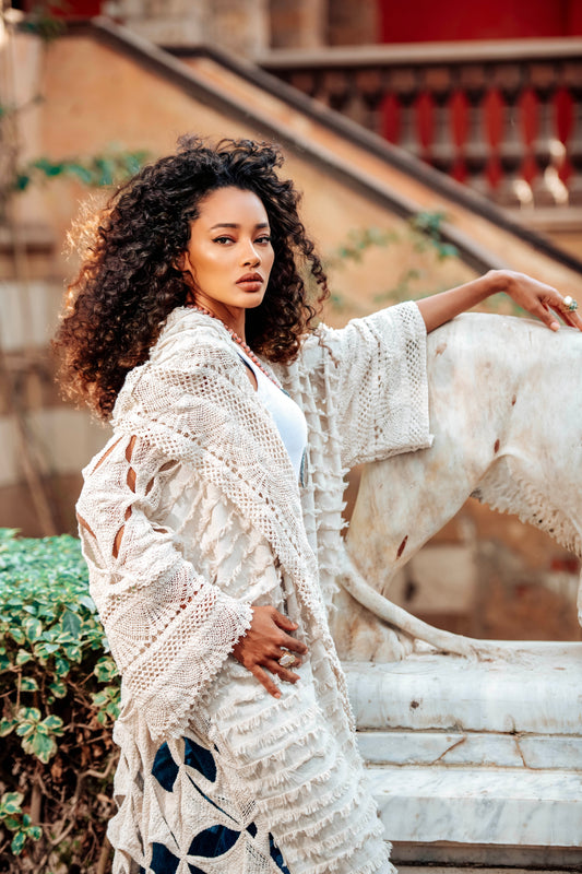 Sold outSamra Hand-Crocheted Linen Kaftan