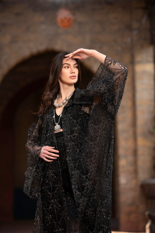 Sedra Kaftan – Luxury black Embroidered Tulle