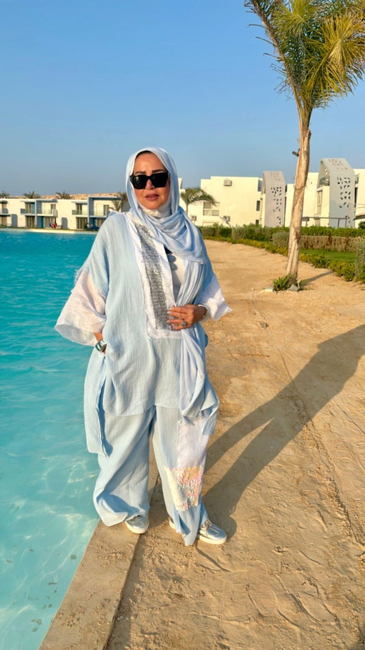 SaleBaby blue linen suit